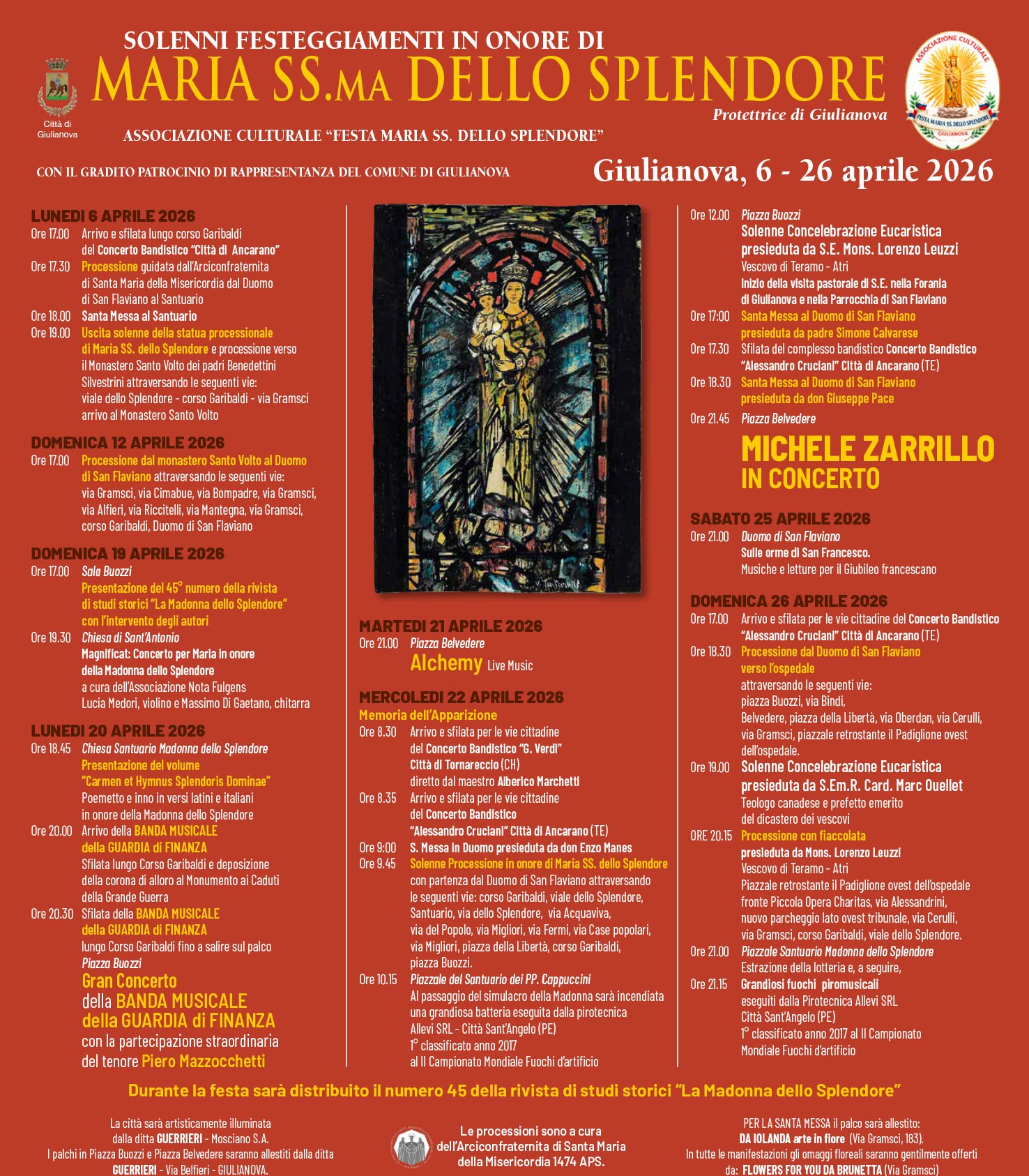 Durante i festeggiamenti viene distribuita la rivista “La Madonna dello Splendore”, giunta al 45° numero, bollettino di studi storici della città.