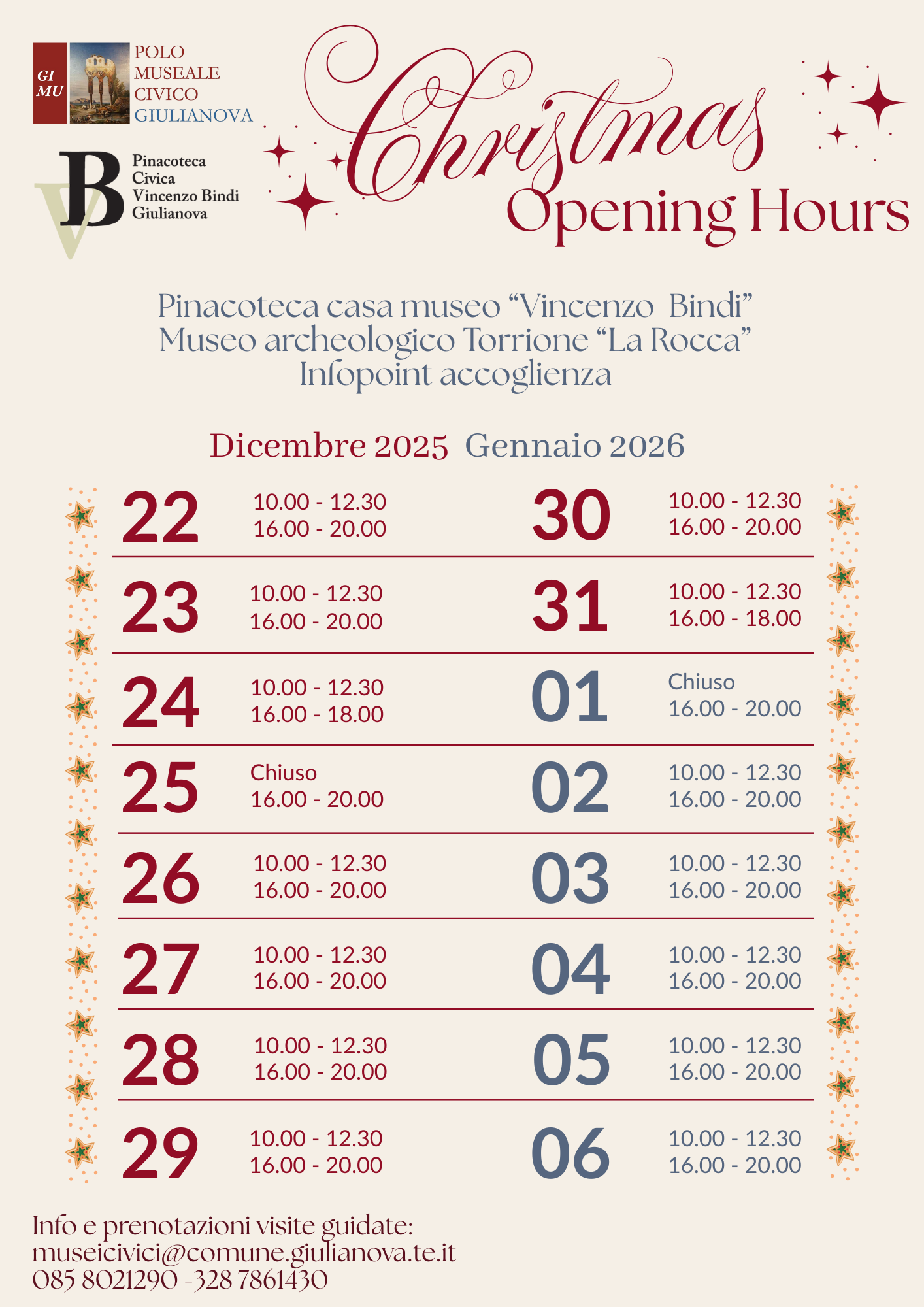Musei civici: gli orari per le Feste natalizie 2025/2026