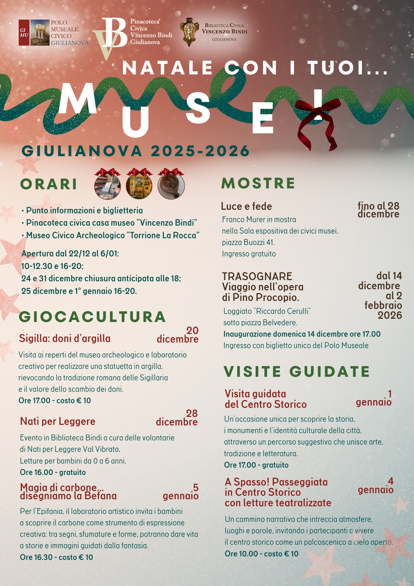 Sabato 20 dicembre, i Musei Civici di Giulianova invitano adulti, bambini e famiglie a un’esperienza che unisce storia, creatività e tradizioni antiche.
