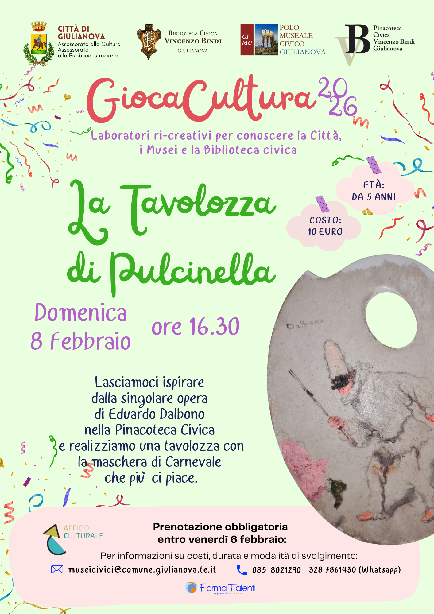 GiocaCultura a Giulianova si veste per Carnevale: domenica 8 febbraio un laboratorio dedicato alla tavolozza dipinta con Pulcinella di Edoardo Dalbono.